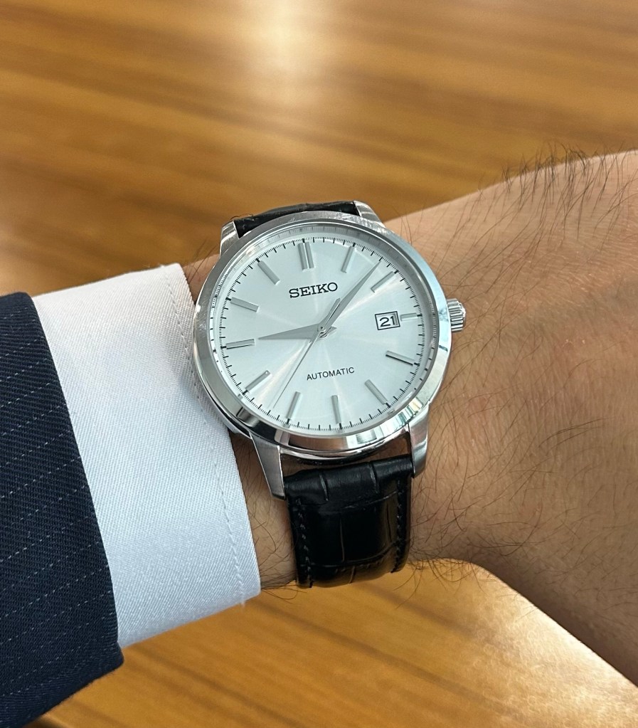 4R35 mekanizmasına sahip bu saat 41 saat güç rezervi sunuyor. Saatin gümüş renk kadranı hem yalın hem de dikkat çekici bir görünüm sağlıyor. Takvim penceresi bu basit tasarımı güzel tamamlıyor. Saatin orijinalinde çelik bilezik var. Gümüş kadran ile siyah deri kayışın uyumunu çok sevdiği için değiştirdim. Böylece daha nostaljik ve klasik bir görünüm sağladım. Bu haliyle tam bir dress watch oldu ve hafta içi takım elbiselerime eşlik ediyor.